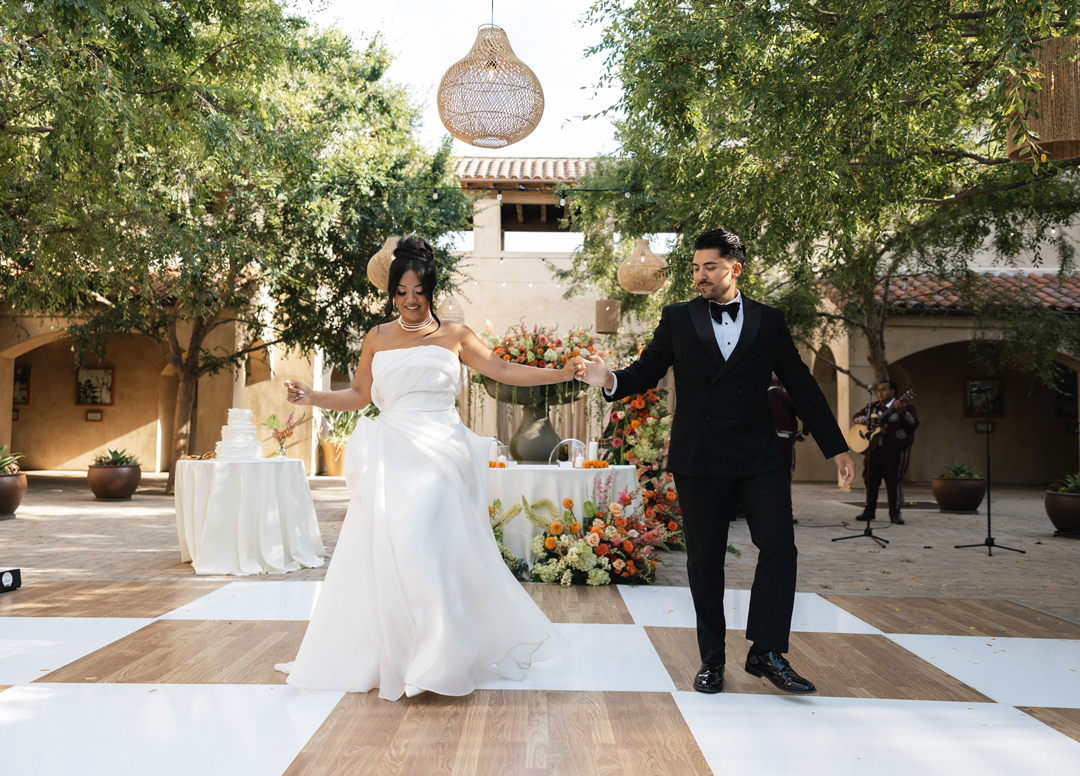 Venue: Serra Plaza // Catering: Jay’s Catering // Photographer: Nicole Binder Photo // Planning: Sunshine Events Co. // Rentals: Sundrop Vintage // DJ: Soundwave Pros // Mariachi: Trio Mariachi Jalisco Music // Florist: Golden Sol Floral Co. // Signage: Allured Design House // Hair: Jenny Mitch Hair // Makeup: Omiglam Makeup // Videographer: Carly Films It // Cake: It’s All About Cake // Photo Booth: The Photo Closet Co. // Dance Floor: Trejo Dance Floors